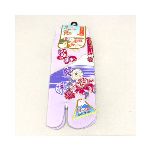 These beautiful Japanese-style tabi socks feature traditional designs. Vibrant flowers and butterflies are depicted alongside the silhouette of Mount Fuji, creating a sophisticated and elegant impression. Each color variation of these socks evokes the changing landscapes of Japan's four seasons.