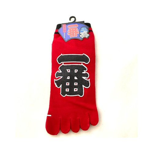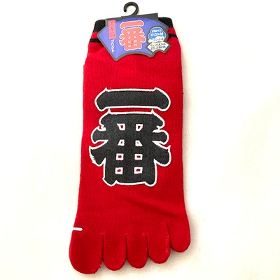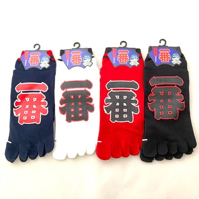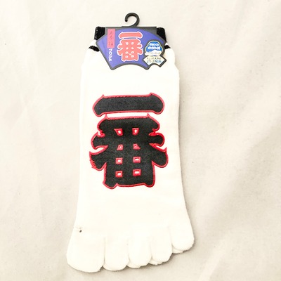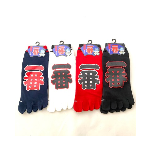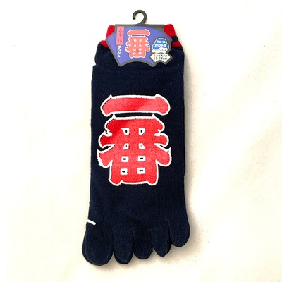 These Tabi Socks feature a bold design with the word "一番" (Ichiban), which means "Number One" in Japanese. The large, striking kanji characters are a focal point of these unique socks, making them a standout piece in your wardrobe. Interestingly, "一番" is one of the most popular kanji characters among foreigners learning Japanese.